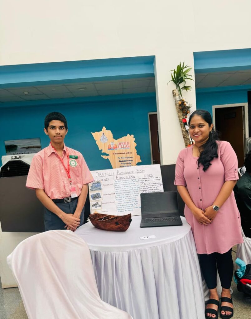 Our Young Innovator Mackelroy Paes, a student of std 9 accompanied by teacher Aashana Parsekar at the Inspire Manak State Level Exhibition and Competition 2024-2025 at Goa State Council Educational Research and Training, Porvorim. His Obstacle Avoidance Boat was impressive! Great job on combining creativity with tech skills. Keep innovating and pushing boundaries – the possibilities are endless!